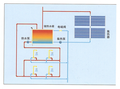 本系統(tǒng)中集熱器集中放置,設(shè)置滿足用戶需求容量的大型儲(chǔ)熱水箱,控制系統(tǒng)、循環(huán)裝置及其他輔助設(shè)...